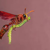 Yarışmada yüksek övgü alan karelerden biri, makro yaban hayatı fotoğrafçısı Bidyut Kalita tarafından çekildi. BBC'ye göre, fotoğraf, çömlekçi yaban arısının bir tırtılı taşıdığı anı yakalıyor.