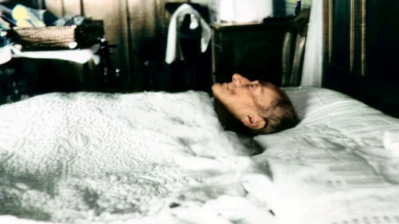 Atatürk’ün naaşı beyaz kefene sarılmış, kahverengi bir muşambayla örtülmüştü.