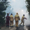 Yangın bölgesinde tedbir amaçlı elektrik kesintisi uygulanırken, evlerini terk etmek zorunda kalan vatandaşlar güvenli alanlara yönlendirildi.