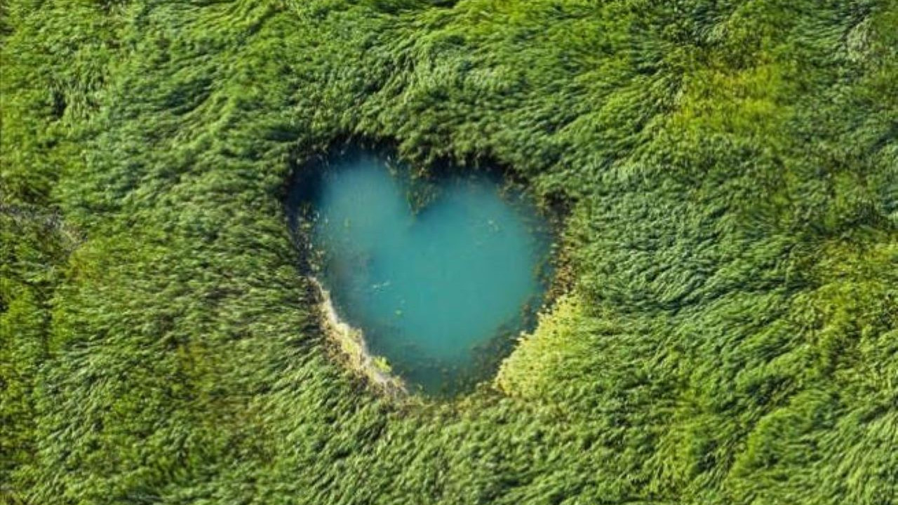 Havadan çekilen görüntülerde özellikle kalp şeklini andıran bir göze dikkat çekti. Göl kıyısında oluşan bu doğal şekil, kartpostallık bir manzara sundu.