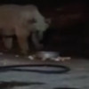 Bingöl’ün Kiğı ilçesinde şantiye alanına inen bir ayı, işçilerin yaban hayvanları için bıraktığı yiyecekleri yedi.